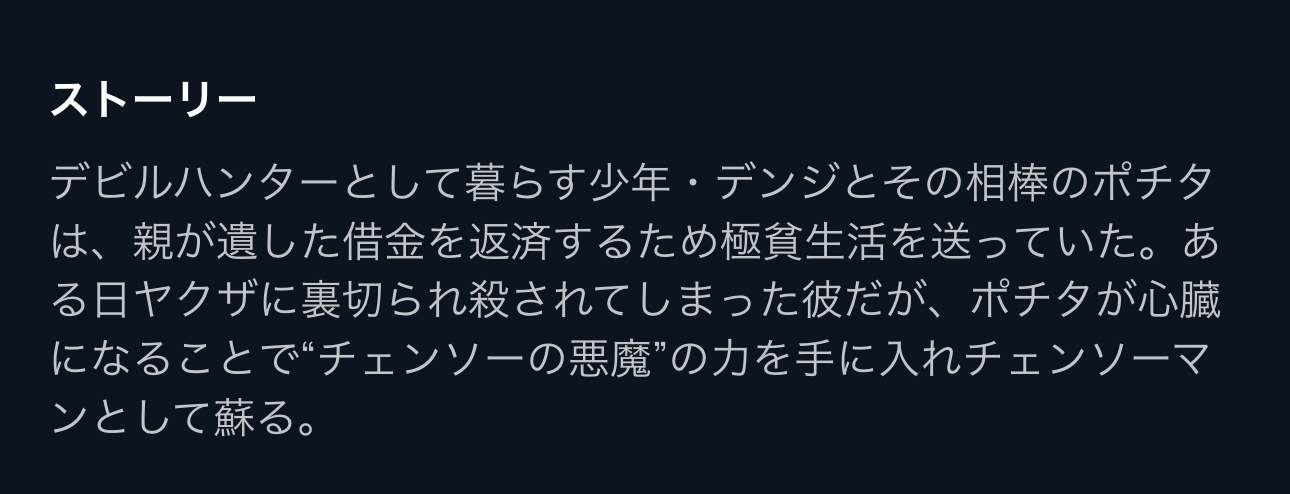 チェンソーマン総集編を見たいけど、このストーリー説明を読むと見る気がなくなる😅