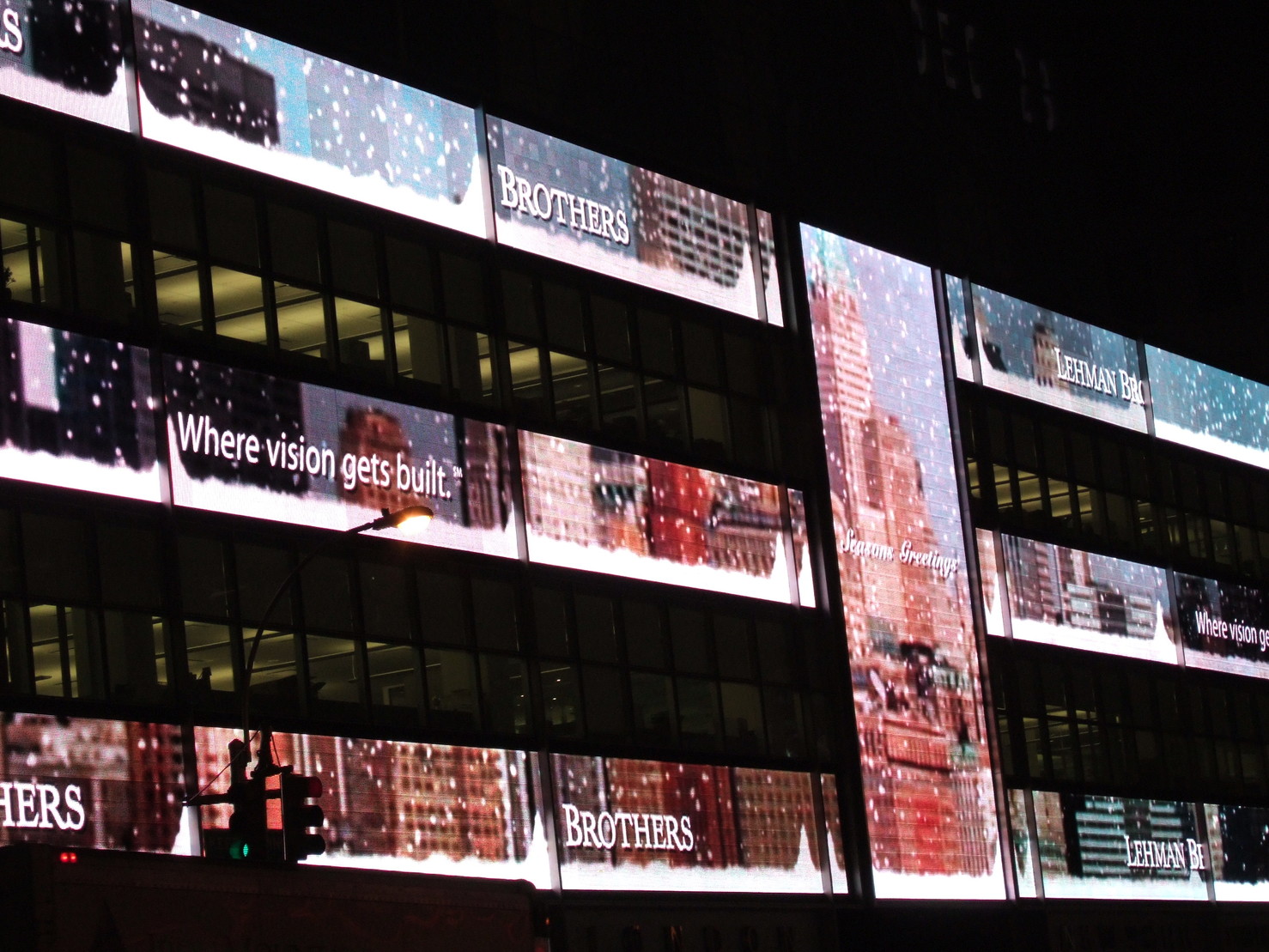 壁面ディスプレイが斬新でNYCにはこんなビルがあるんだ!と思って撮影していただけなんです!まさか、リーマン・ブラザーズのビルだったなんて、ねぇ…。
