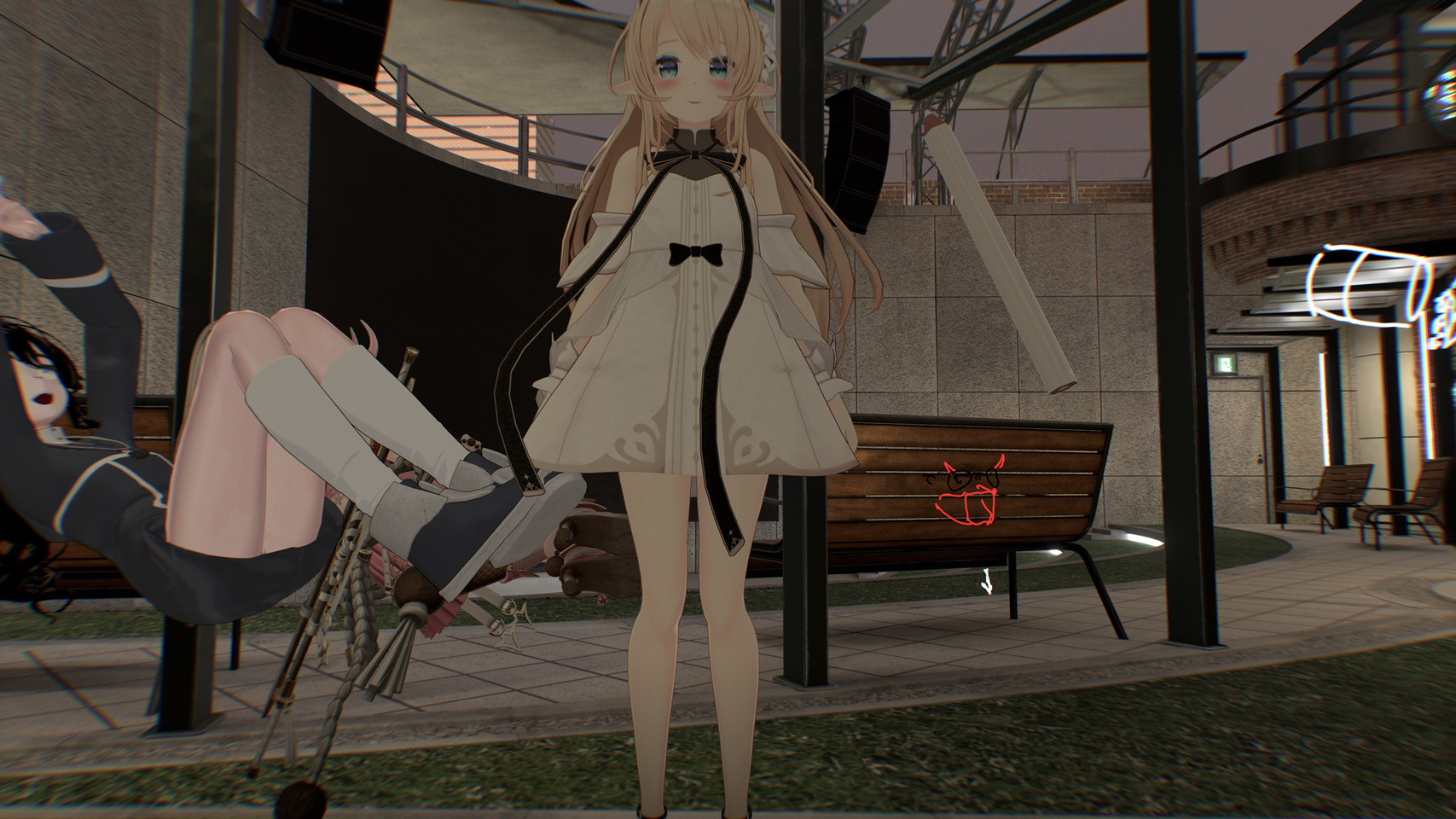 障害でしばらくVRChatログインできなかったので、Blenderで看板作ってSubstance Painterで質感付けて仮ポスターをワールドに反映させてた。深夜帯ではVRChat入れたけどソーシャル0人だったので、上げたものの確認だけした。