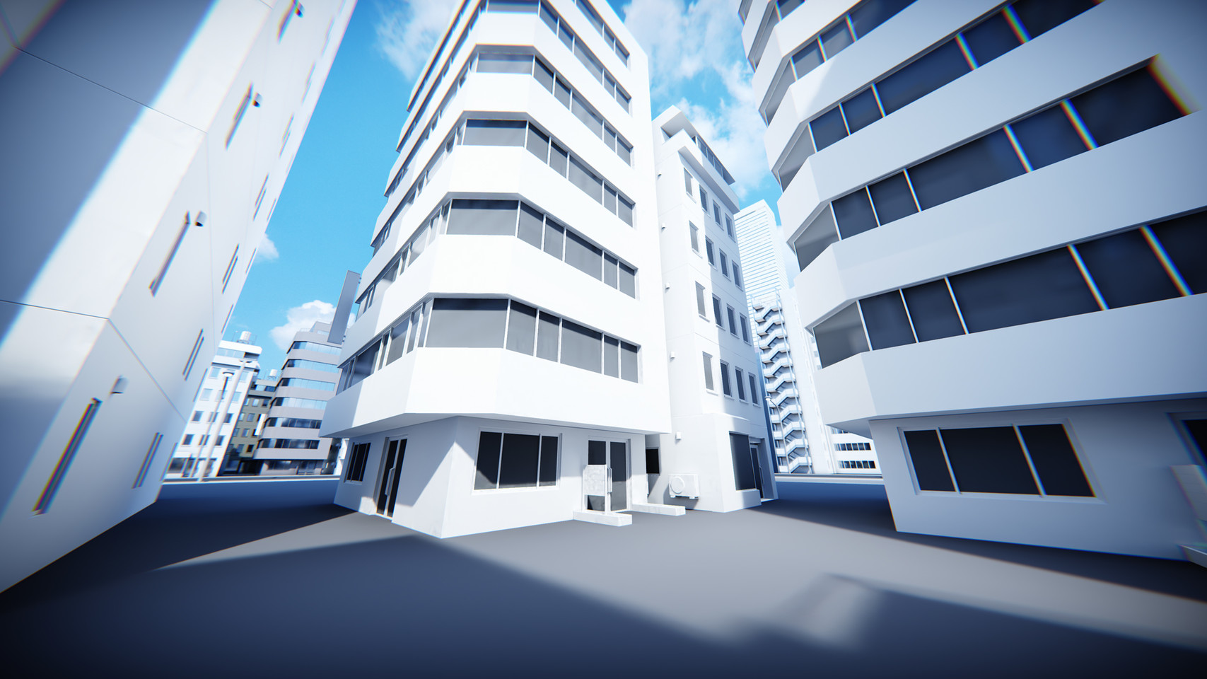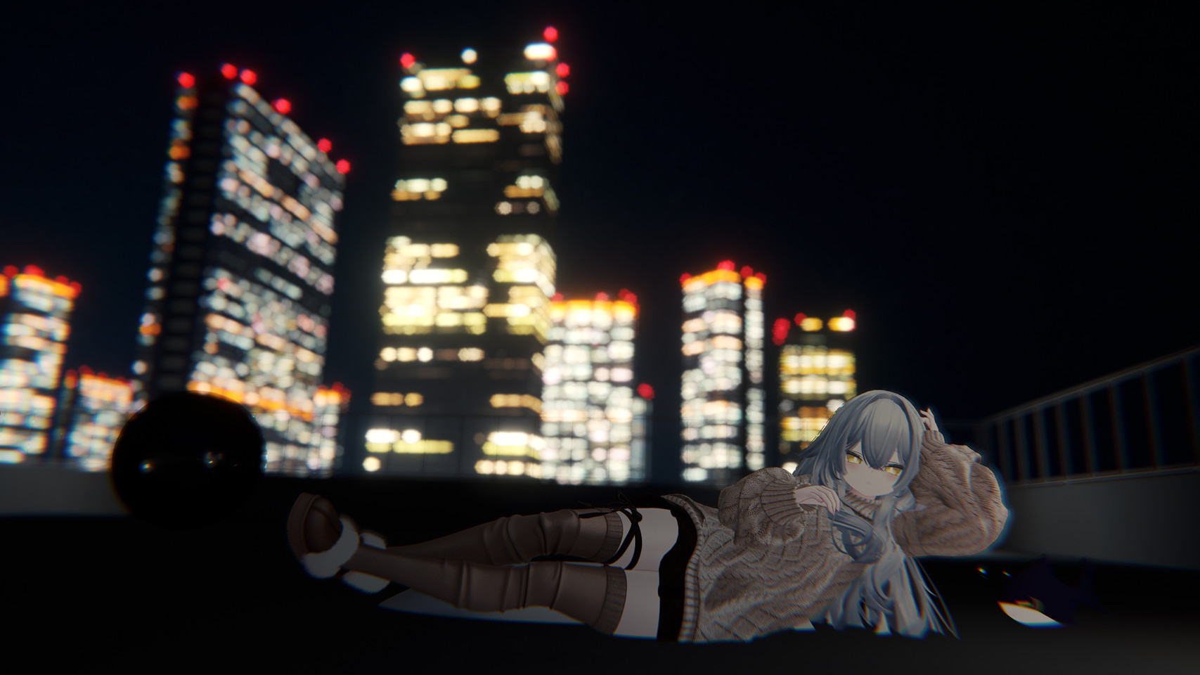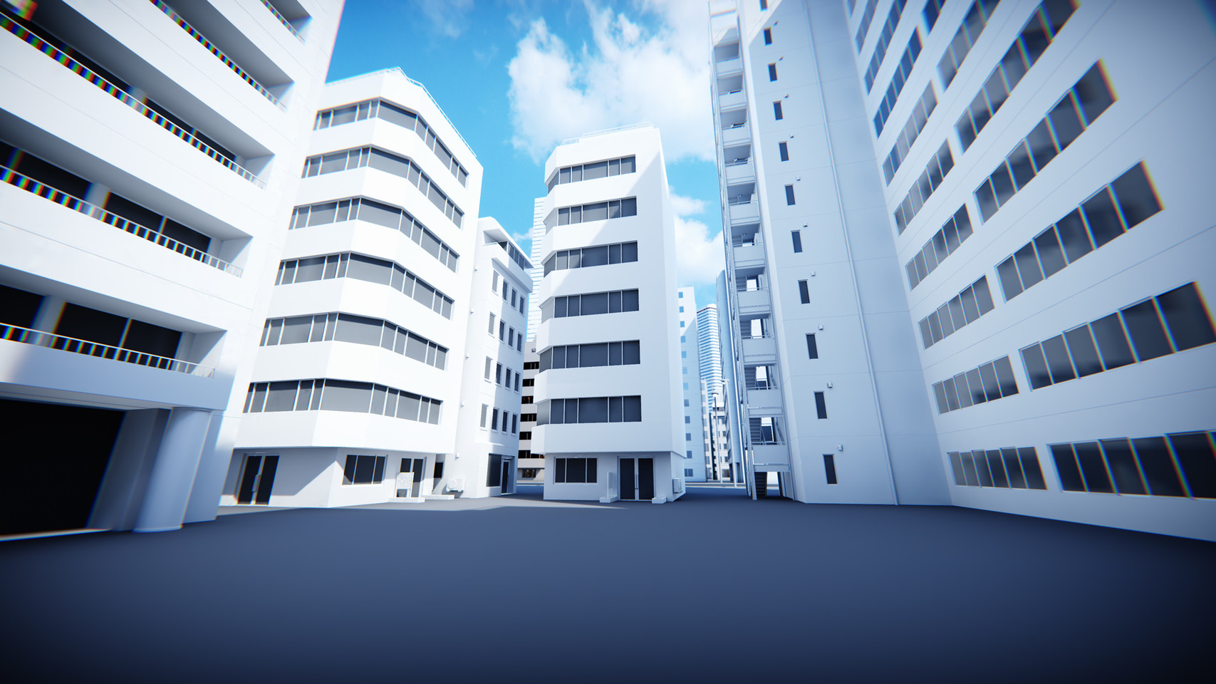 Skyboxの晴1.5mB(近景なし版)をテストでワールドにあげてみてた。近景ビル20m範囲内くらいはメッシュ。それ以降は全部Skybox。Bakeryでワールドの照明にも使ってる。グレーディングも強め。もう少し近景ビル省いたほうが分かりやすいかな?#VRChat