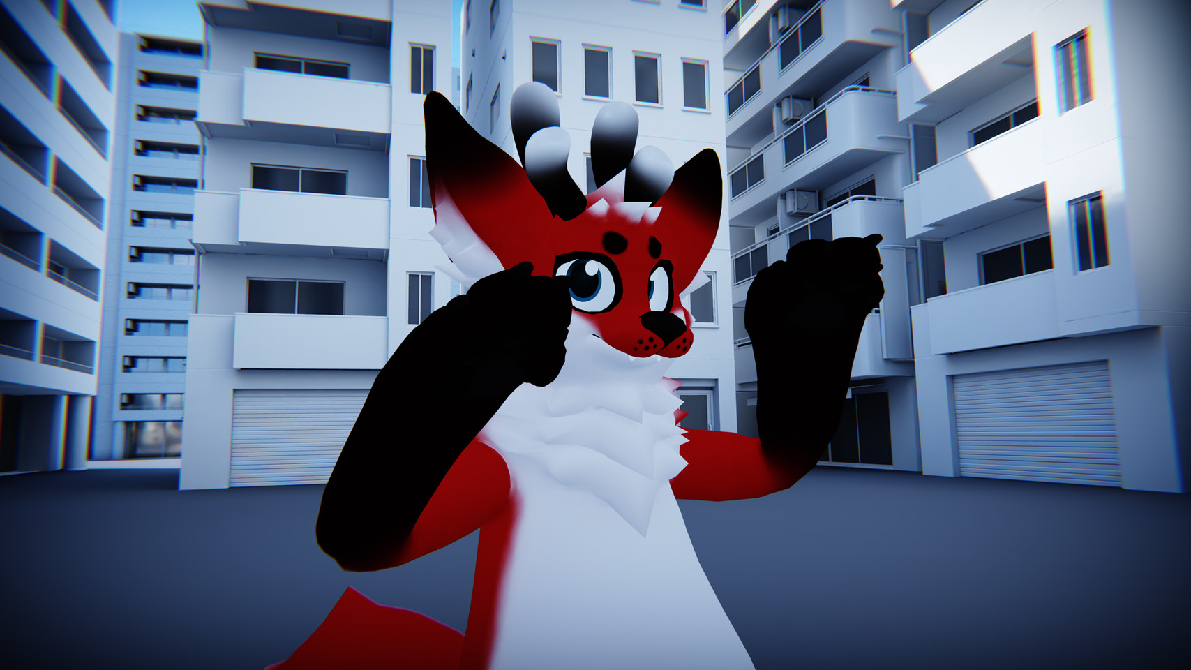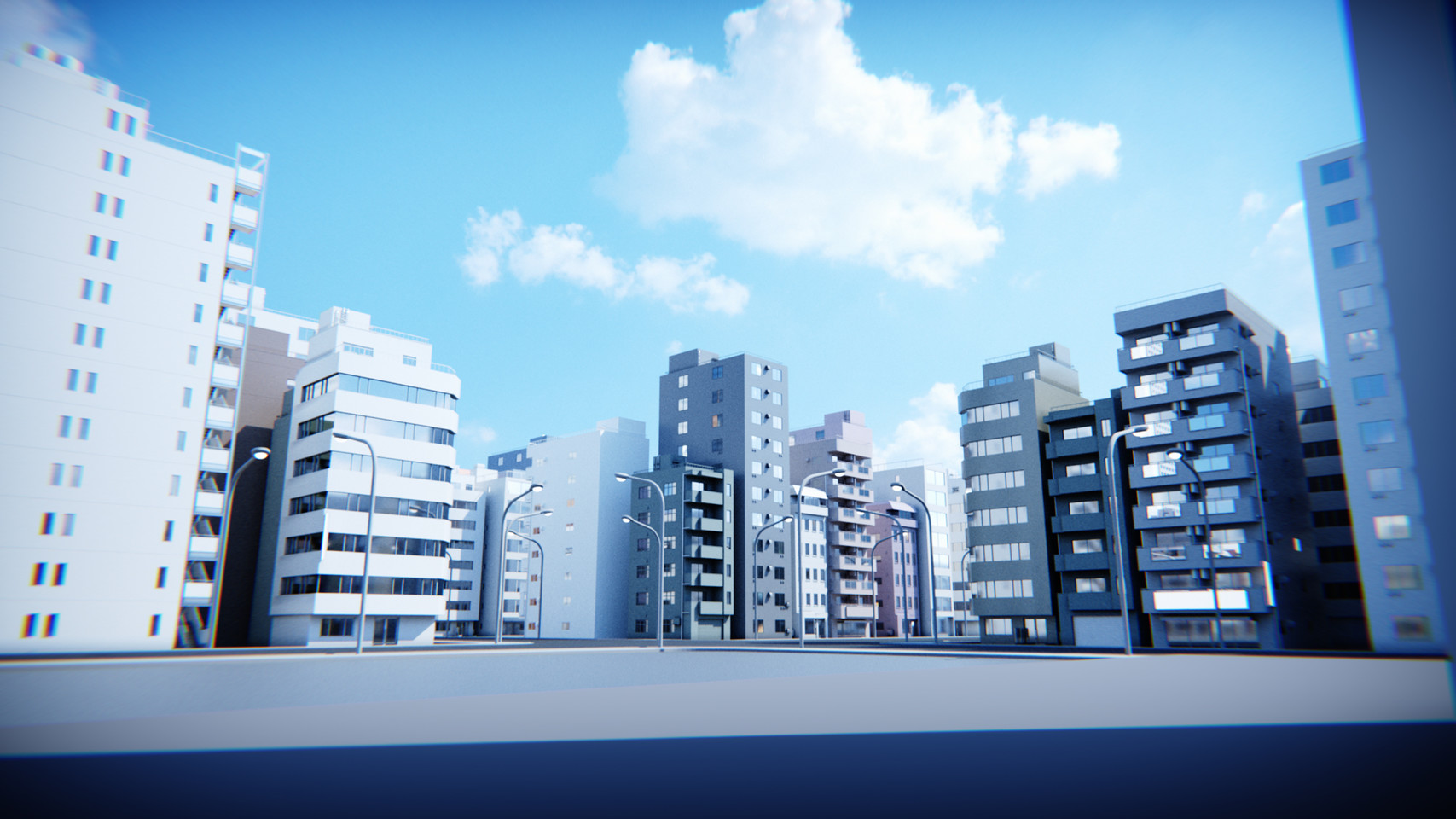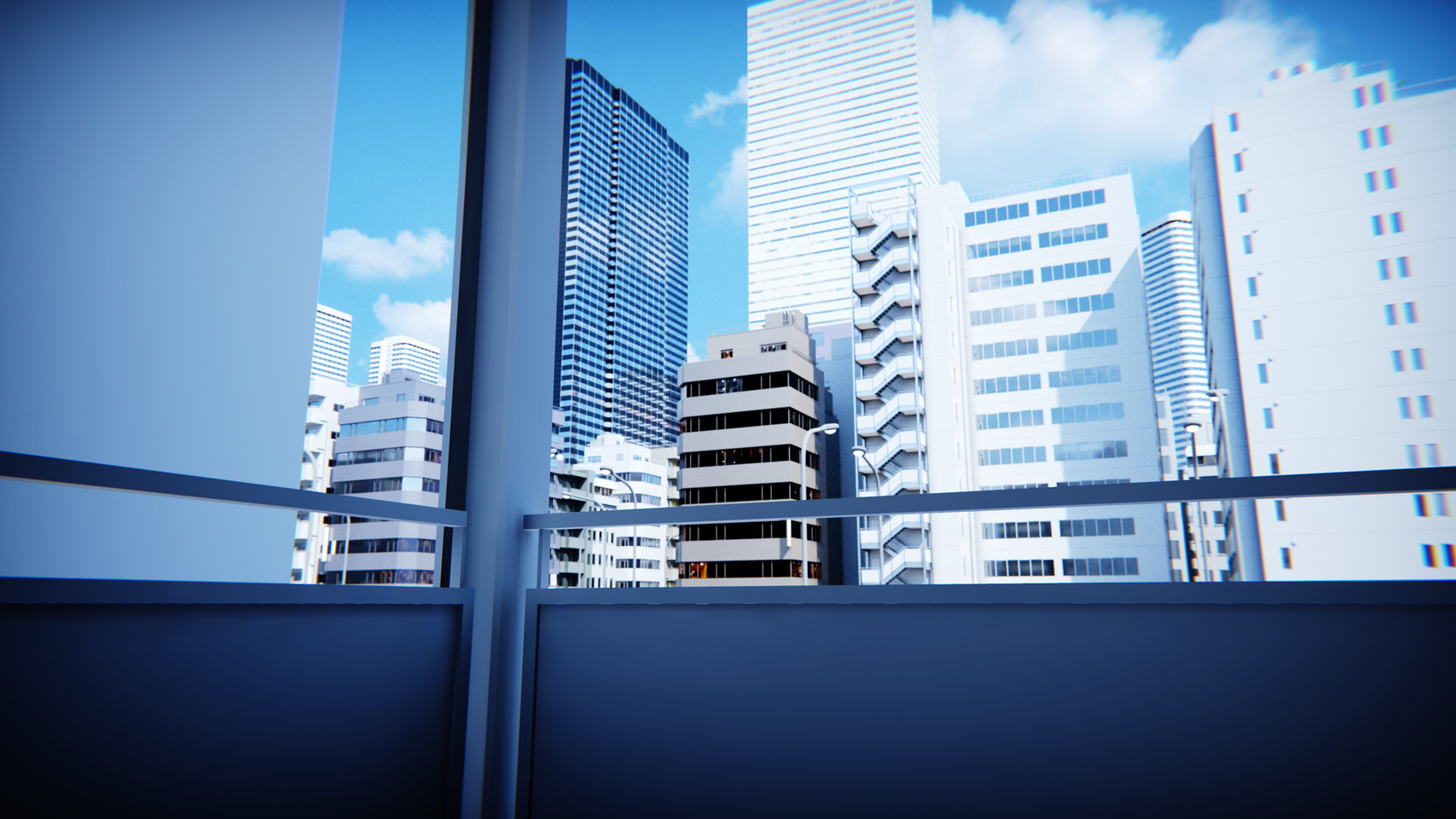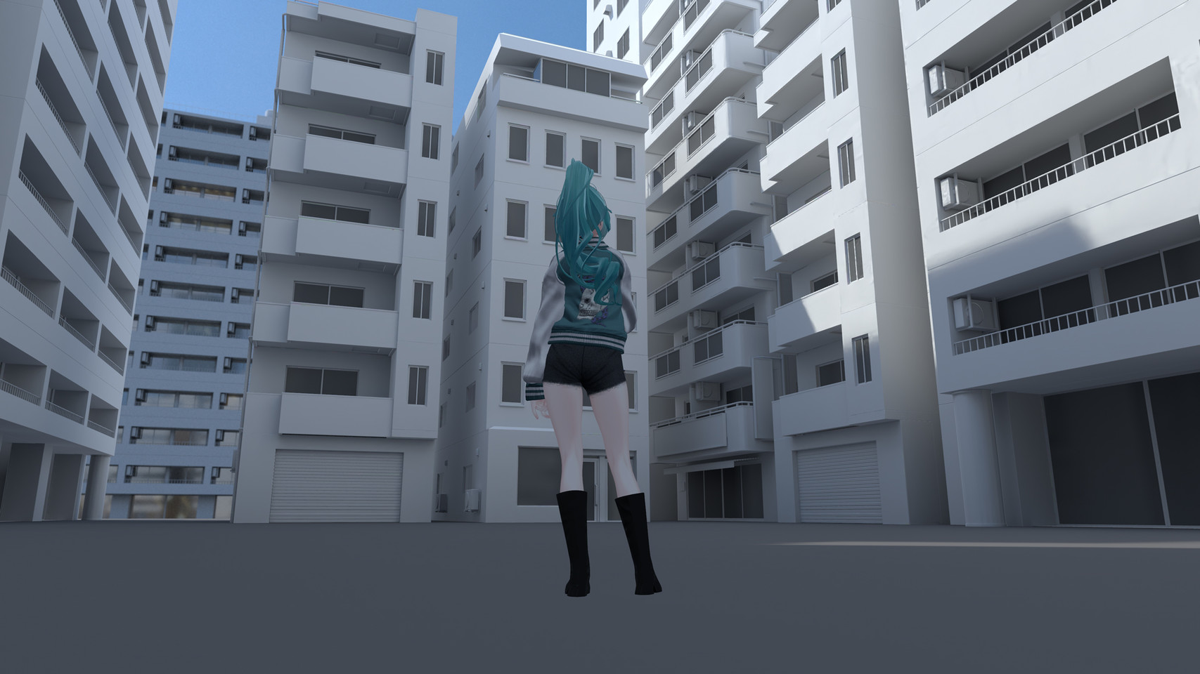 Skyboxの晴1.5mB(近景なし版)をテストでワールドにあげてみてた。近景ビル20m範囲内くらいはメッシュ。それ以降は全部Skybox。Bakeryでワールドの照明にも使ってる。グレーディングも強め。もう少し近景ビル省いたほうが分かりやすいかな?#VRChat