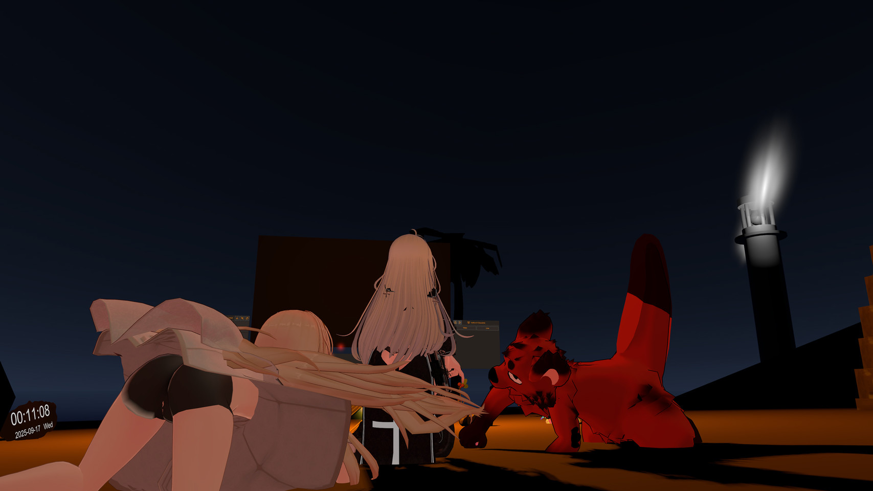VRChatに入るのが遅くなったのでやむなくデスクトップで入ってみてたけど、片手間ではなくメイン画面にフルスクリーンにしてカメラトラッキングをオンにしてやるのであれば思ったよりも悪くないかもなあ、とは思った。モーションでリアクションを返せるのが大きい。