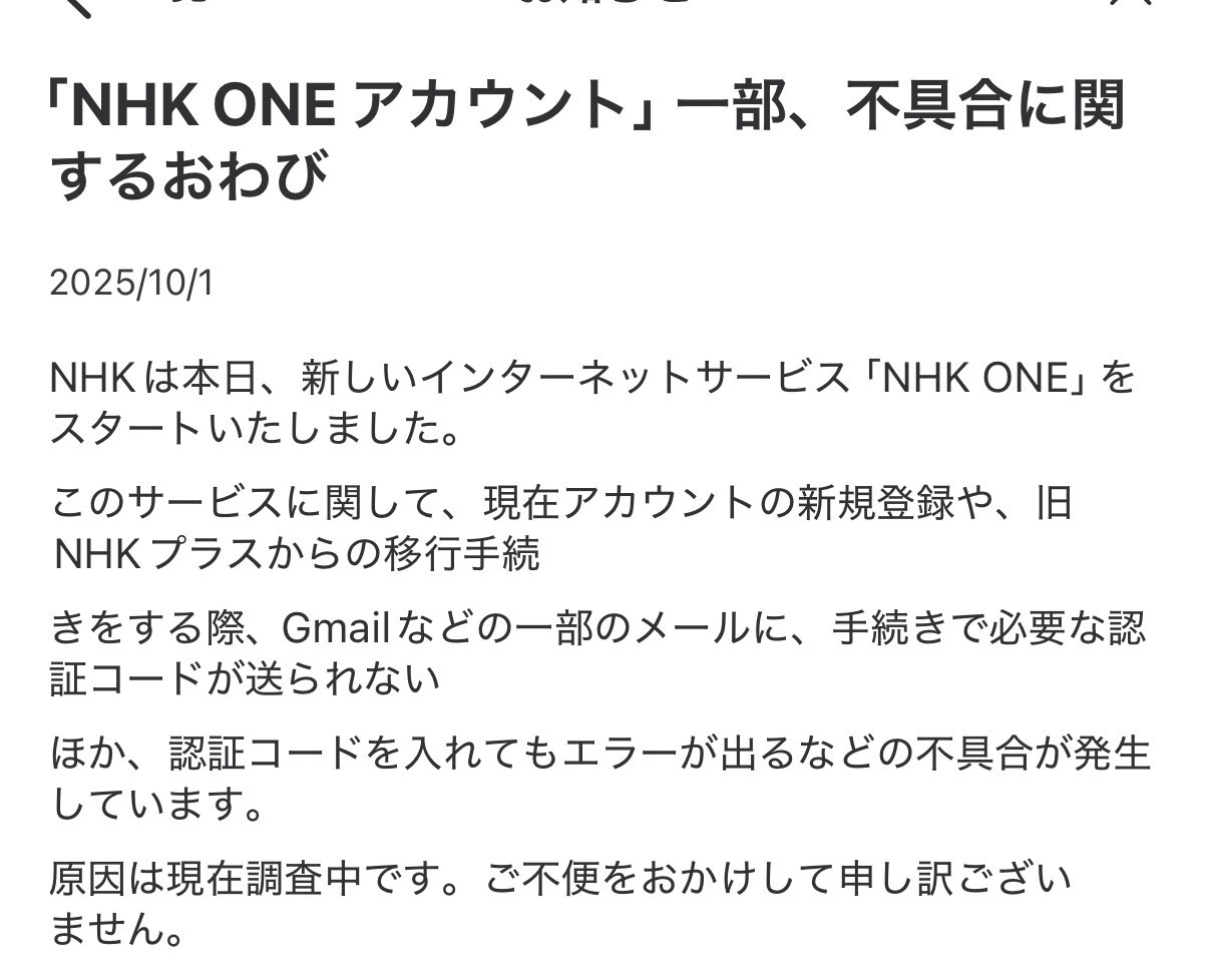 今日から新しくなったNHK+、全然ダメだね。新規アカウントすら作れない。