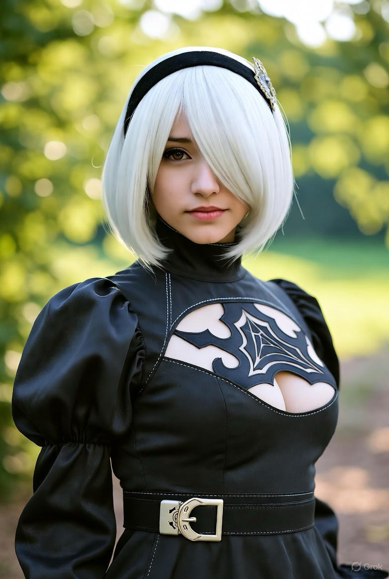 2Bのコスプレをしてる人の画像を生成して。これだけでgrok が描いてくれたのがこれ。#ai generated