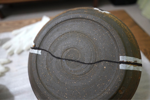 本日の金継ぎ、水研ぎ。100番のやすりで水をつけながら錆漆をきれいにしていきます。接着部だけを磨くような指示がありますが、こんな細い領域だけをどのように磨けと😅この作業は今までの中で一番辛い。時間がかかって実はまだ終わっていない。そして何より神経を使います。気をつけていたにもかかわらず、結果お皿は傷ついてしまいました。作業をした味として残ってもらうしかないですね🥲明日は引き続き磨きますが、この後は黒漆を塗って、それも水研ぎをするらしい。これは気が重たい。