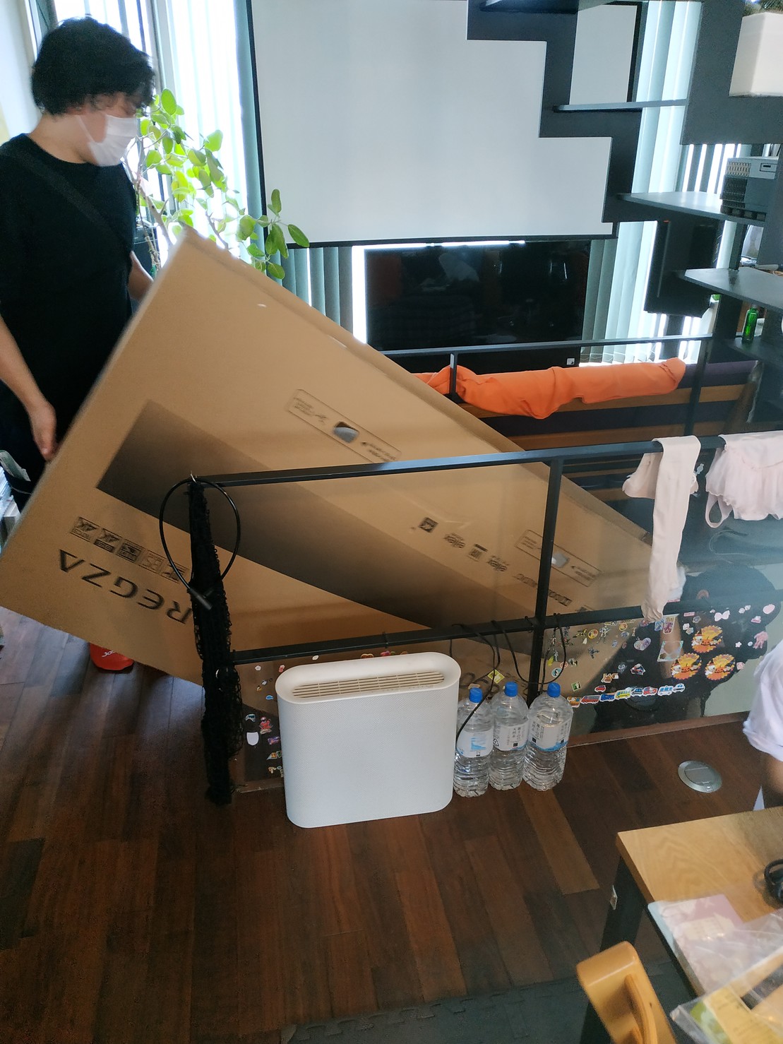 購入前に気になってた組み上がりのサイズ感は、フットプリントが50cm四方で高さが70cm弱。スペースがないので、押し入れに鎮座させてみました。フィラメントへの湿気の影響がどうでるのかちょっと心配です。V2の音というかノイズは、ファンが回ってるなくらい。出力中もMacBookProのファン全開よりは静かです。出力中に隣で寝落ちできるレベル。これから、ディスプレイのファームウェアのアップデート https://youtu.be/Jswzrh2_ekk とベルトのテンションの調整 https://youtu.be/m_53bYW0z8c の公式動画がアップされてるのを確認します。スライサーをどれにするか、フィラメントを何買うか悩み中です。