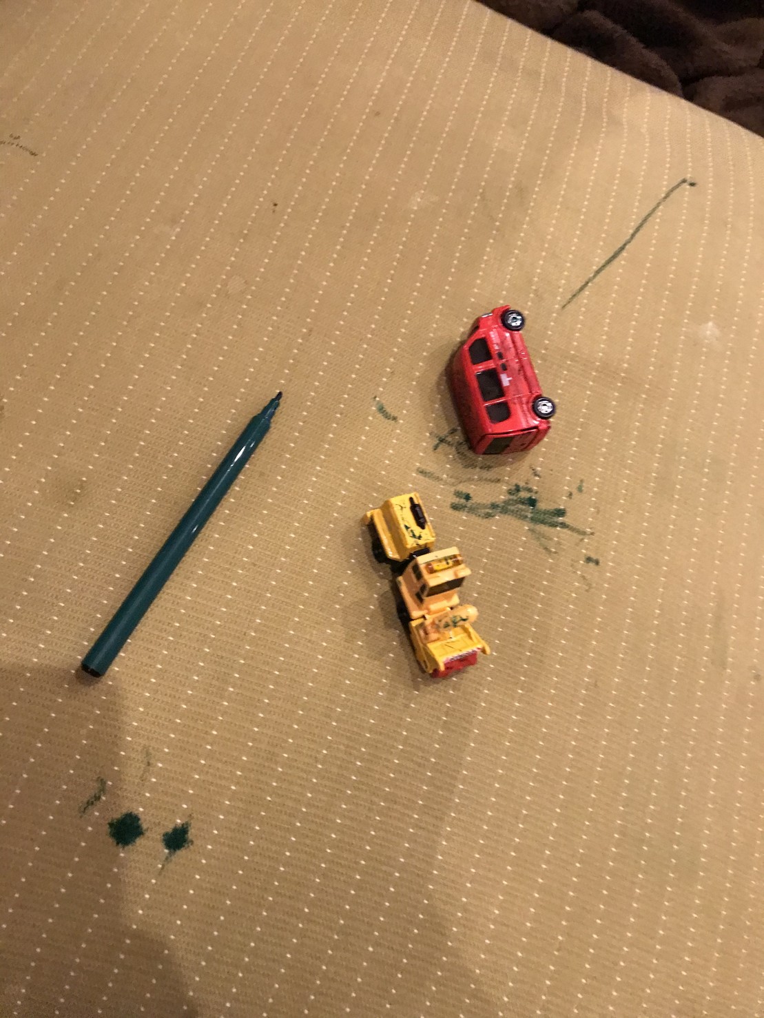 息子がトミカをペンで塗ってて、何してるのーって話したら、