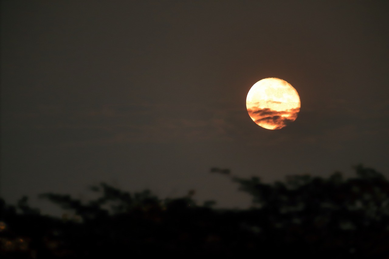1日遅れのストロベリームーン撮りに来たけど、雲があるよなー