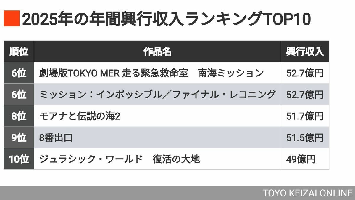 “25年の《映画興行収入ランキングTOP10》が示す「新たなヒット傾向」。『鬼滅の刃』『国宝』が牽引!アニメ人気は新局面、邦画実写でも動きが” toyokeizai.net/articles/-/9235