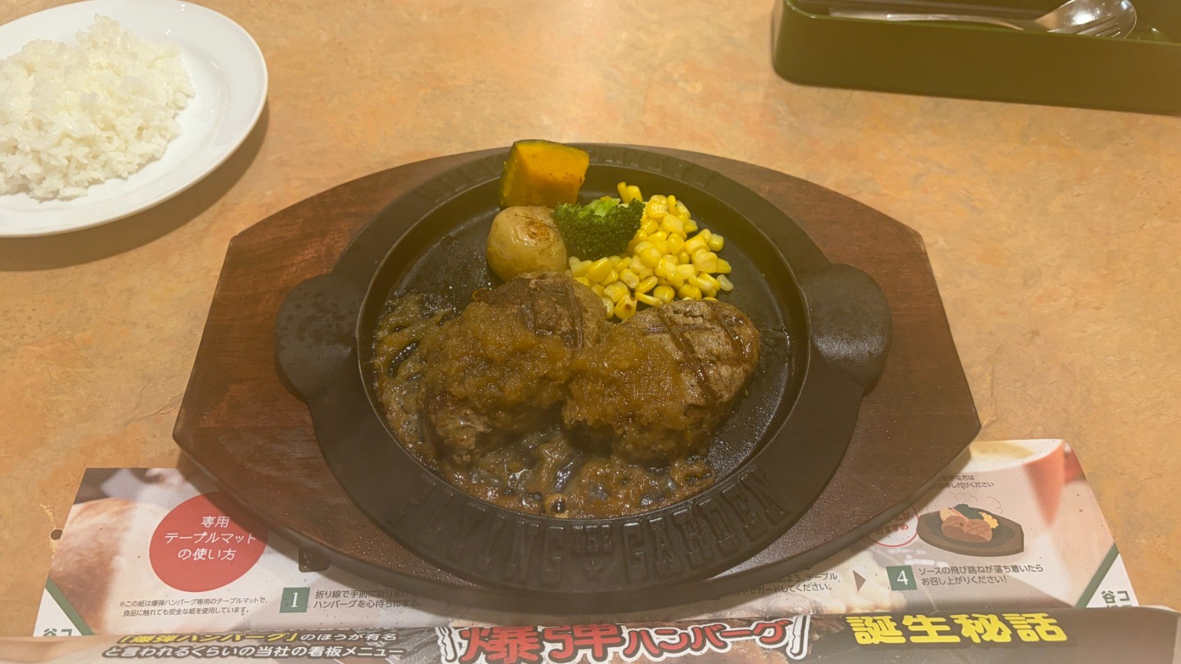 ラジコン帰りに北関東名物?爆弾ハンバーグを初めて頂きました。さわやかのハンバーグに似たビーフ100%美味しいハンバーグ。
